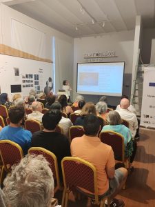 Marmara Aks projesi sorumlusu Adil Çamur’un açılış sunuşunun ardından adalı sanat tarihçisi Emine Önel Kurt, ada, sanat ve resimde Marmara Adası ve çevresinin temsili üzerine konuştu.